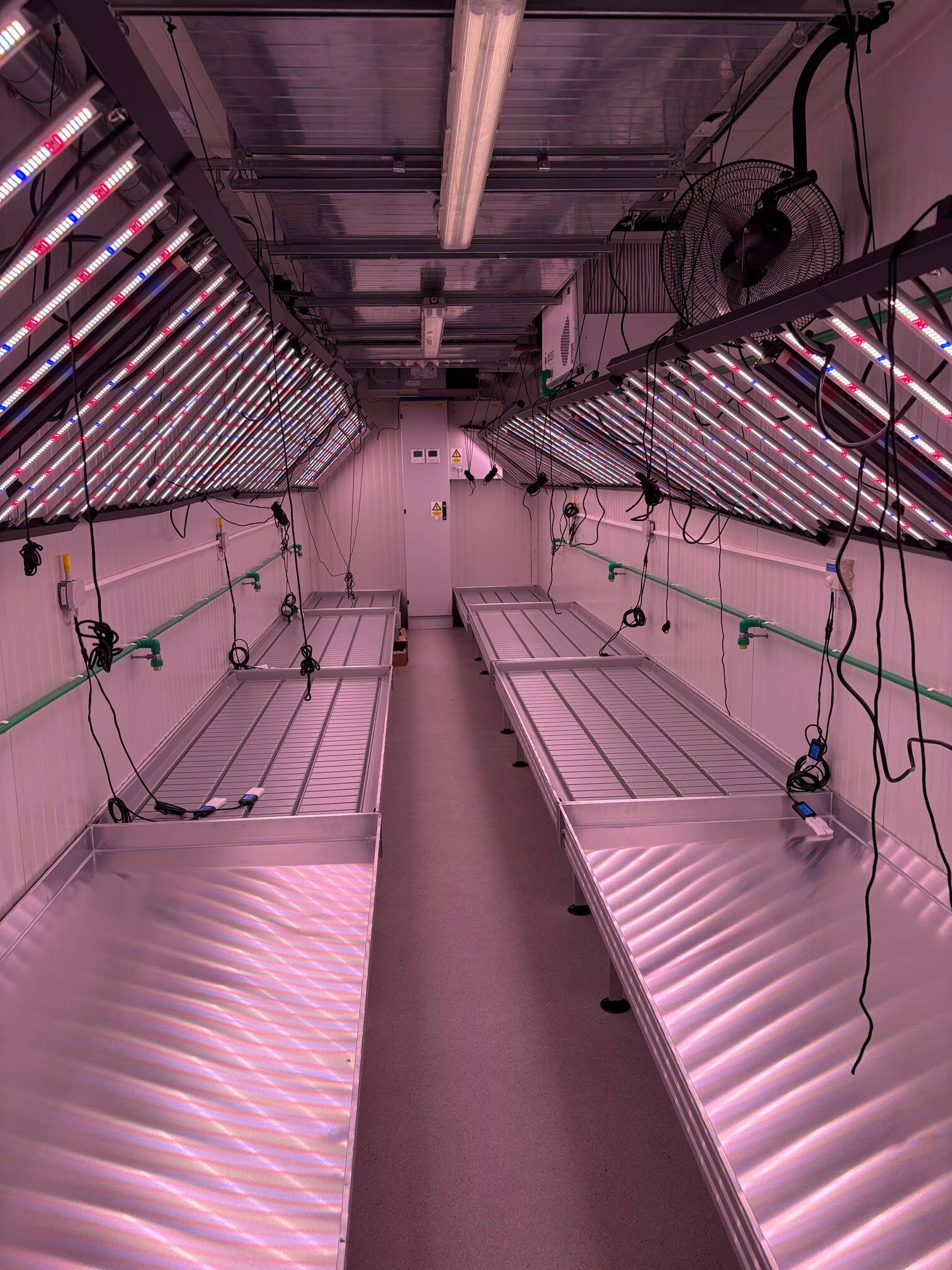 Wir arbeiten mit hochmodernen Cannabis-Anbaucontainer. Diese sind mobil einsetzbar, einbruchsicher und entsprechen höchsten technischen Ansprüchen. Ein Container steht für eine Anbaufläche von 16m². KI-Steuerung unterstützt den Menschen im Anbau. Zum Beispiel verfügt die Beleuchtung über zusätzlich Infrarotkameras, die die Temperatur und Eigenschaften der Pflanzenblätter permanent abtastet und überwacht, um dann entsprechende KI gesteuerte Maßnahmen ergreifen zu können. Ebenso gibt es einen geschlossenen Wasserkreislauf inkl. Osmose-Anlage. Vor dem Zutritt zur eigentlichen Anbaufläche, wird in einer Schleuse die Luft vollständig gereinigt.